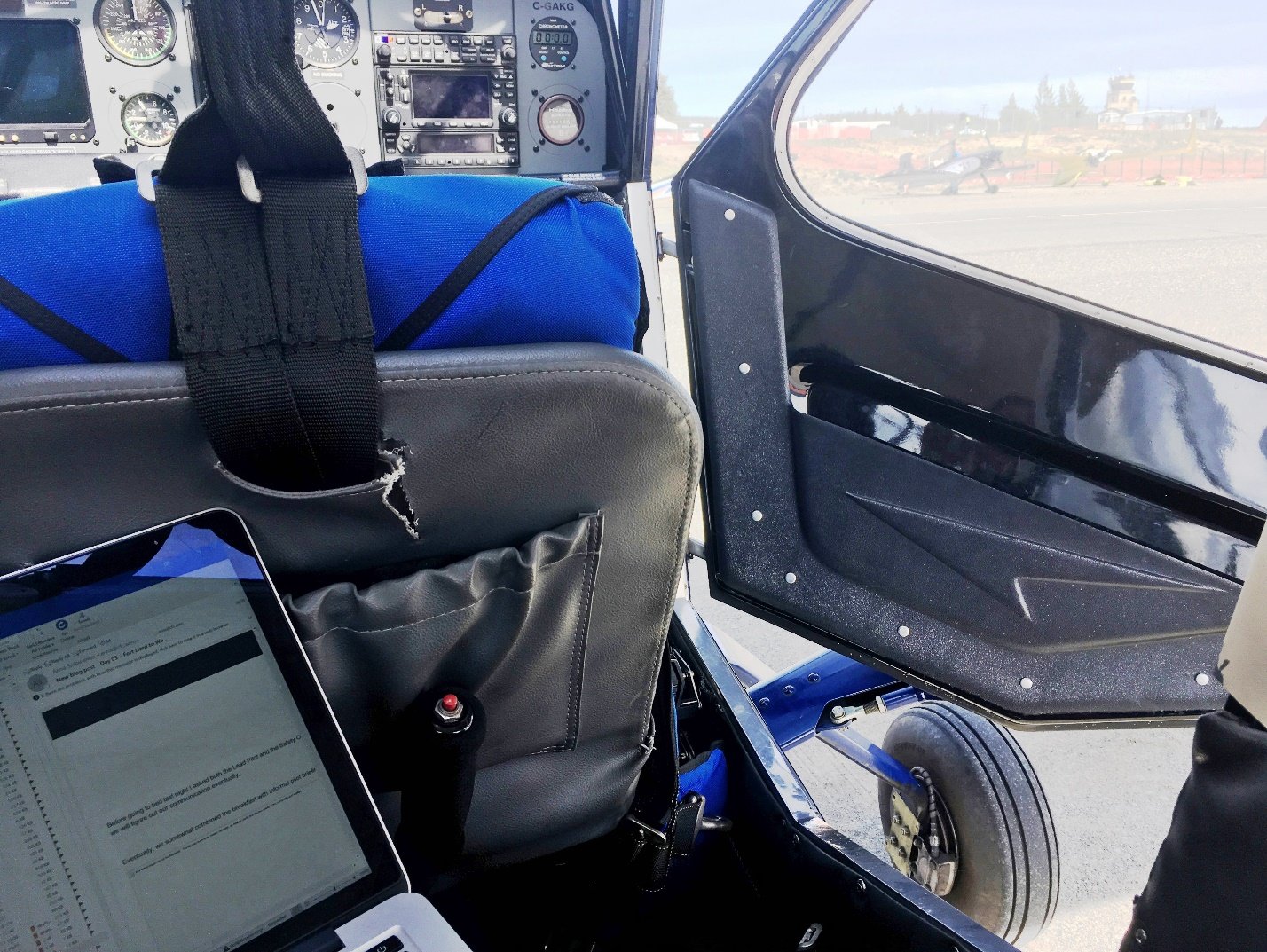 Whitehorse airshow day started as usual, incl. the weather briefing that did not include anything special – blue skies and winds below 10 kts. Just the way we want it for an airshow! While waiting for my turn to fuel, I spent some time in my “office”.
