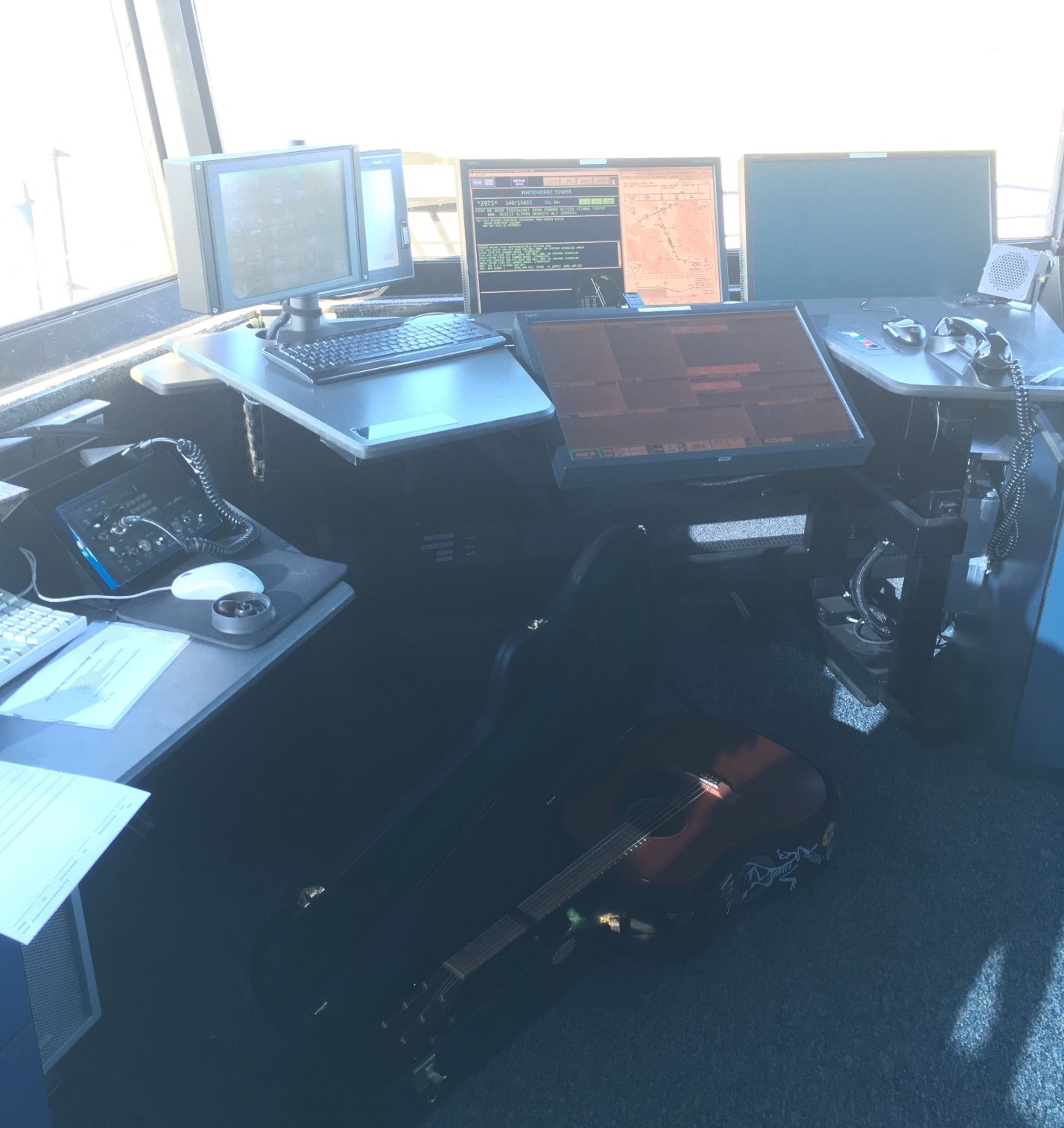 A quick visit to the Nav Canada tower for weather briefing (that guitar is there literally “under the radar”)