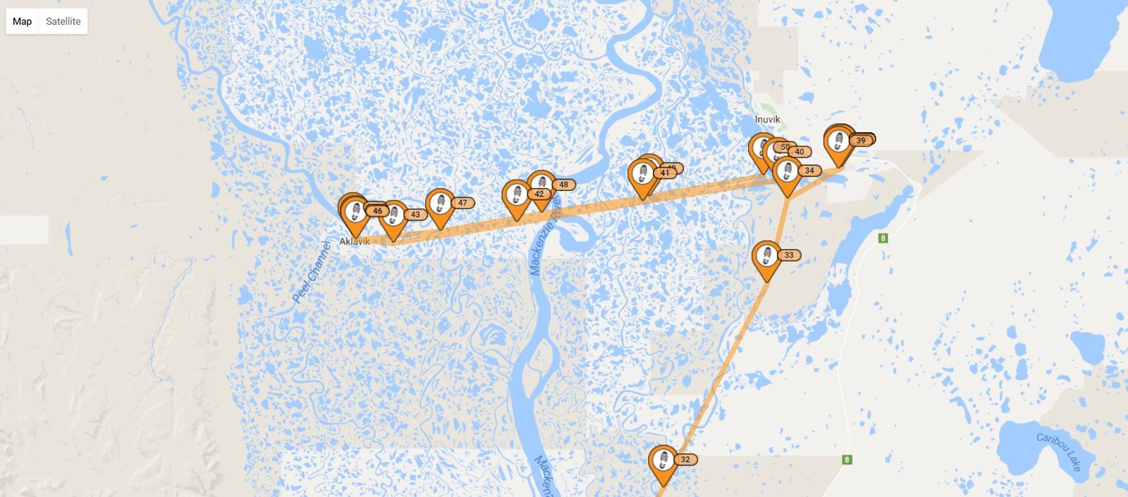 But what we found out soon from the people from Aklavik, that these river waters are actually navigable. You can take your own boat from Aklavik to Inuvik or a “bus”. In winter, it turns into ice road, when you drive on solid ice over the river. When the ice reaches certain thickness, even big trucks can go on it! But the hard time is in-between: when the ice is not strong enough to support cars, but still does not let boats to navigate. With the global warming, the window when ice roads are usable shrinks every year.