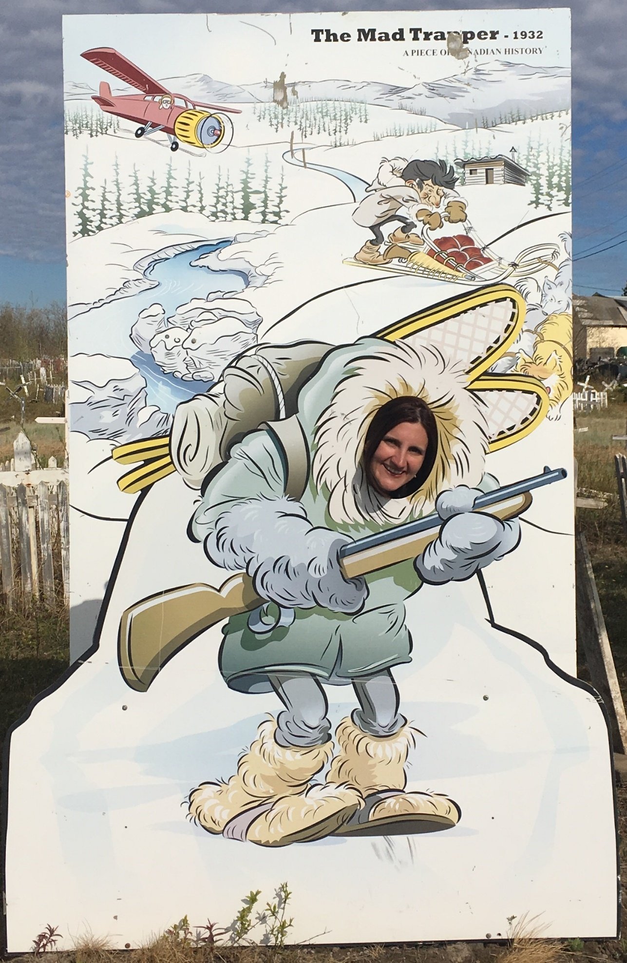 Prior to departure, one of the local people invited us to drive around in his truck to show the town. For a small community of 700 people, we were surprised to see that they have a school up to grade 12, community centre and sports centre incl. swimming pool and hockey rink, health centre and 3 churches – Anglican, Protestant and Catholic. And a neat story of the mad trapper!