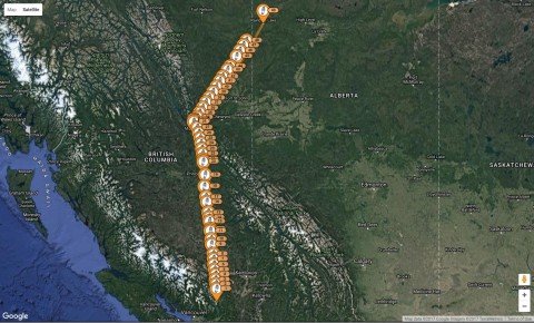 Quick refuel, and I was on my last leg to Rainbow Lake. For a moment I hesitated – with all the weather delays it was already approaching 5pm, which is 6pm Alberta time. And I was departing for another 2.5h leg into the mountains. It would not combine well with the night time. Checked Foreflight, and it told me the next sunset 2250. I totally forgot how far North I was and how little night time is here. Soon there will be none at all!